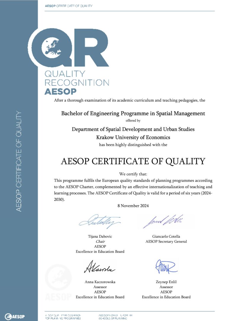 AESOP – certyfikat jakości kształcenia dla Gospodarki przestrzennej