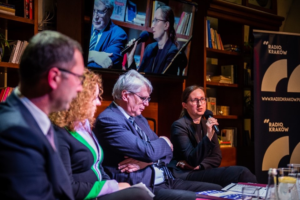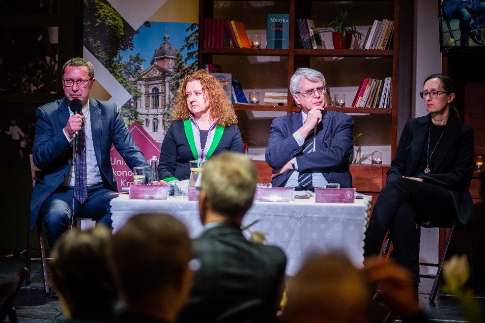 Debatę poprowadził prof. Marcin Zawicki, dziekan Kolegium Gospodarki i Administracji Publicznej UEK. W panelu dyskusyjnym udział wzięli: redaktor książki prof. Jacek Purchla oraz autorki rozdziałów dr Dominika Hołuj i dr Joanna Sanetra-Szeliga – Katedra Historii Gospodarczej i Społecznej / UNESCO Chair For Heritage and Urban Studies. Wśród poruszanych problemów znalazły się kwestie transformacji miasta po 1989 r., społeczeństwa obywatelskiego i ruchów miejskich a także Krakowa jako miasta eventów i miasta kreatywnego.