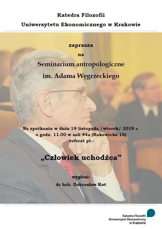 Katedra Filozofii Uniwersytetu Ekonomicznego w Krakowie zaprasza na kolejne spotkanie w ramach Seminarium antropologicznego im. Adama Węgrzeckiego.