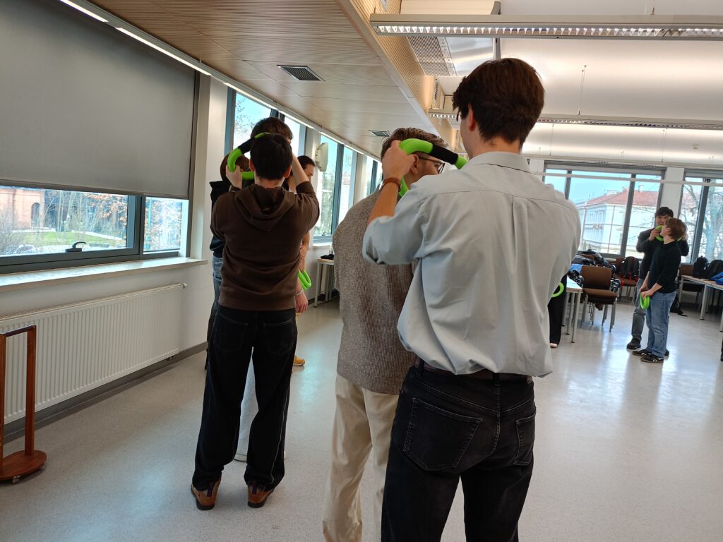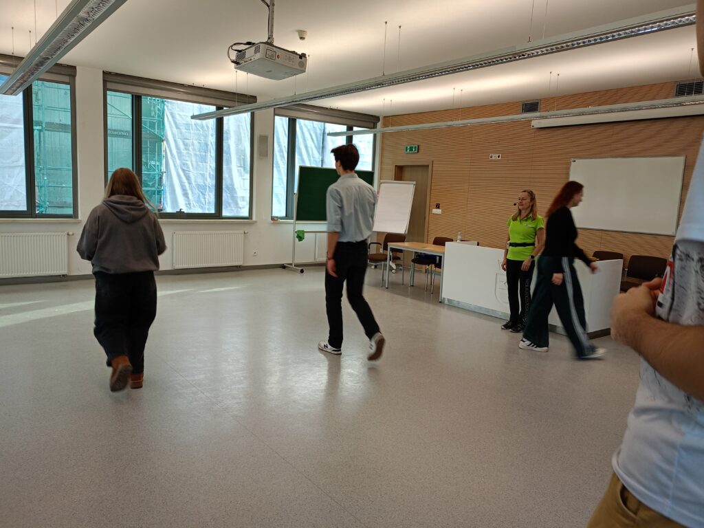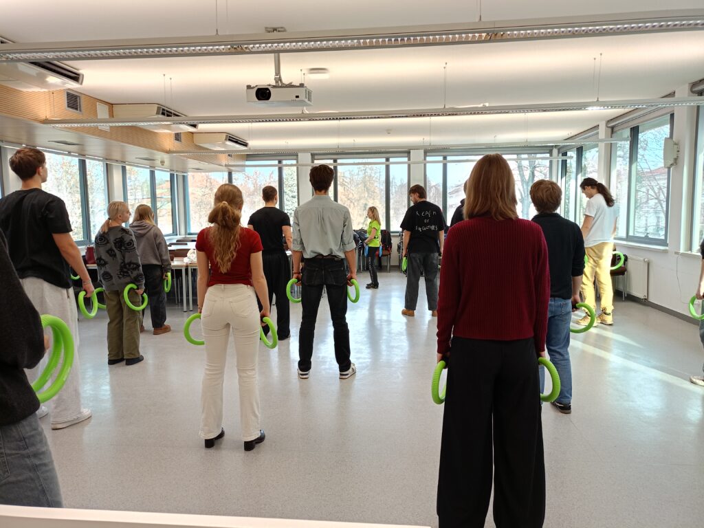 Ostatnie zajęcia (tj. 17.12.25) z pewnością zostaną zapamiętane przez stacjonarnych studentów III roku Stosunków Międzynarodowych w szczególny sposób, gdyż w praktyce mogli przekonać się, czym jest slow jogging oraz jakie właściwości zdrowotne mają ćwiczenia ze smovey. O historii tych obu form aktywności fizycznej, ale i technicznej ich stronie opowiadała zaproszona na zajęcia Pani dr Joanna Gradek, która jest :